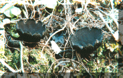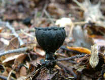 Black inside and out with paler coloured flesh (in cross section). The inside of the cup is smooth while the